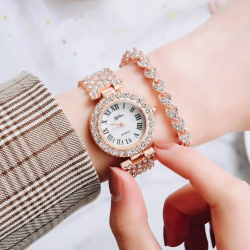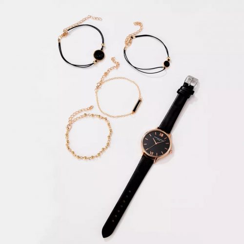 5pcs Set Women’s Luxury Leather Band Analog Quartz Wrist Watch