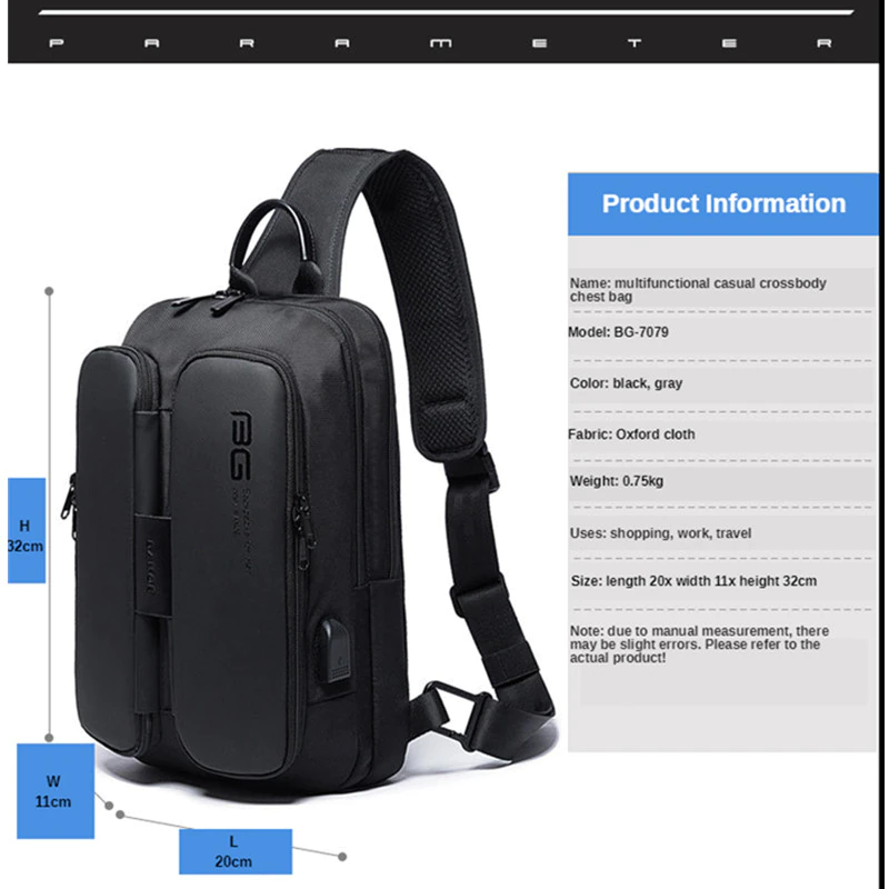 BANGE Men’s Chest Pack Casual Crossbody Bags Male USB Charging Shoulder Bag Oxford Messenger Bag Waterproof Large Capacity 2021
